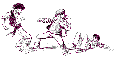 Il y a un avant et un après bagarre. C'est comme ça. La règle est immuable. La raison de la rixe est toujours mauvaise : une querelle qui s'envenime. Ça commence doucement. Les paroles blessantes broussinent. Puis, très vite, les insultes pleuvent. Une seule peut suffire, mais en général, il faut attendre l'arrivée d'une de taille conséquente pour que la castagne éclate et que les coups spoutnichoient. Oubliez le parapluie : il protège assez peu. Préférez-lui la canne à pommeau métallique ou, si vous êtes évêque, la crosse épiscopale : vous aurez l'avantage, profitez-en.